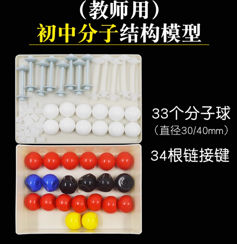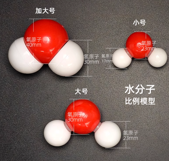 初中教师演示用,氢原子球直径不小于23mm,其他原子球直径不小于30mm