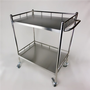 600mm×400mm×800mm;不锈钢材质;至少两层,各层带护栏,带橡胶垫;车轮:Φ75mm,厚25mm;一轮带刹车;载重60kg,车架扭动≤15mm