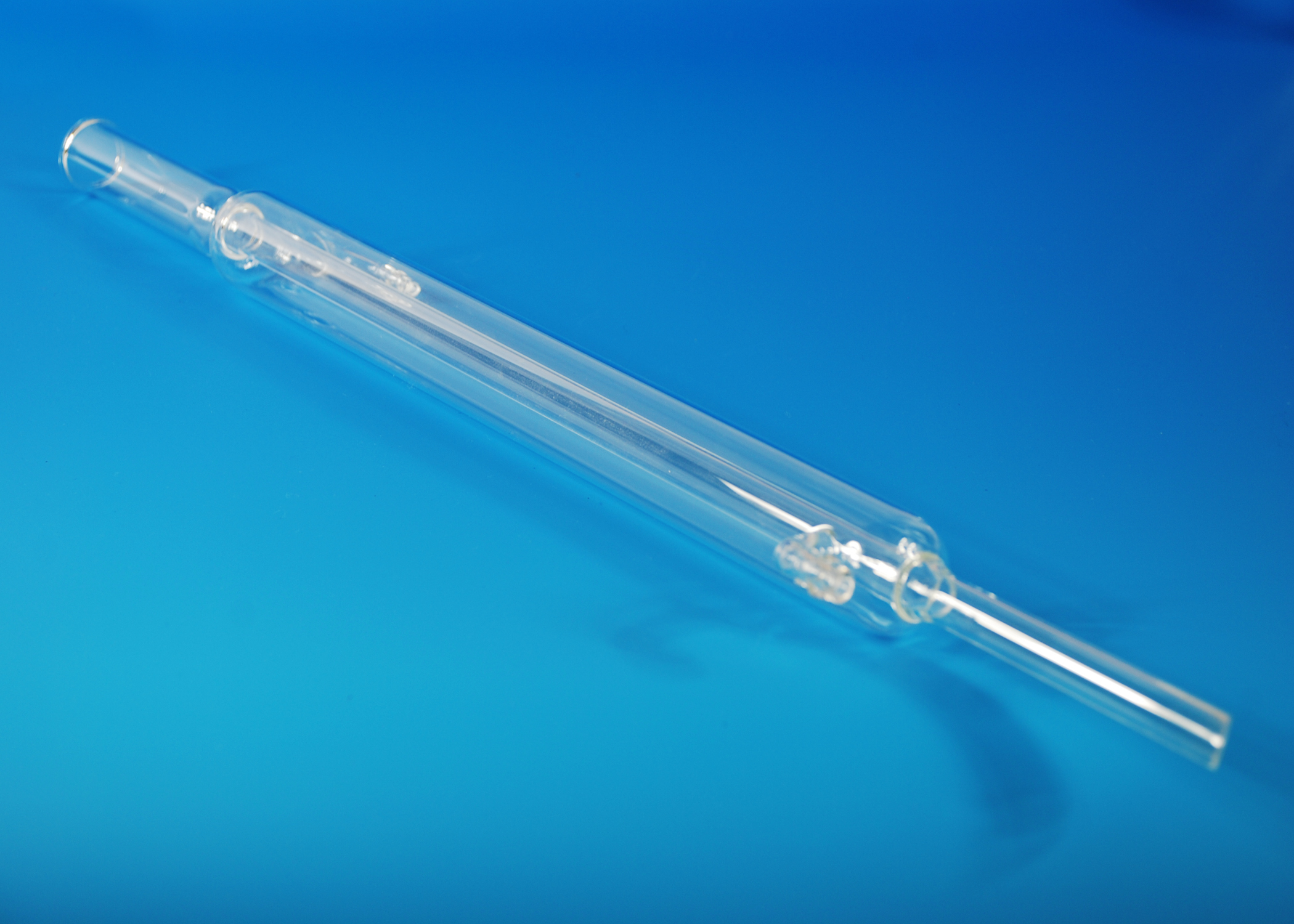 直形,管径均匀,应有防滑脱沟槽,用于组装蒸馏装置。规格:直固,300mm。外形尺寸:外套管长300±10mm,外径33±1.5 mm,上管长80±10mm,外径 23±1mm,下管长100±10mm,下管外径12±0.5mm,进出水管口径4±1mm,内芯外径11±0.5mm,内芯、外套管厚>1.2mm,下管厚>1.5mm。造型规整,芯管居中,各管口无毛刺,上管口卷边圆正,无缺口,焊接处光滑牢固,无严重玻璃缺陷。