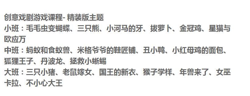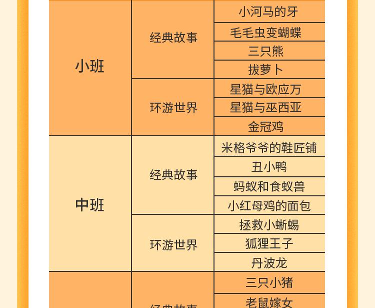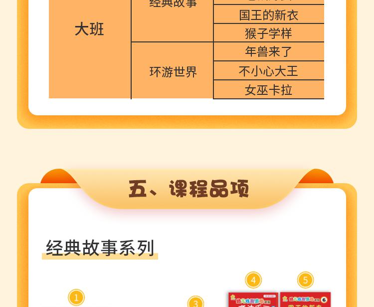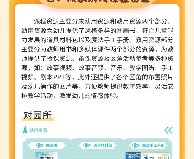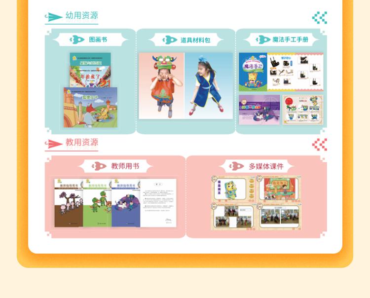 1、年龄段:小、中、大班2、规格:绘本、游戏本、字词图卡、服装道具、操作插页3、品相:小班6个主题故事、中班7个主题故事、大班7个主题故事
