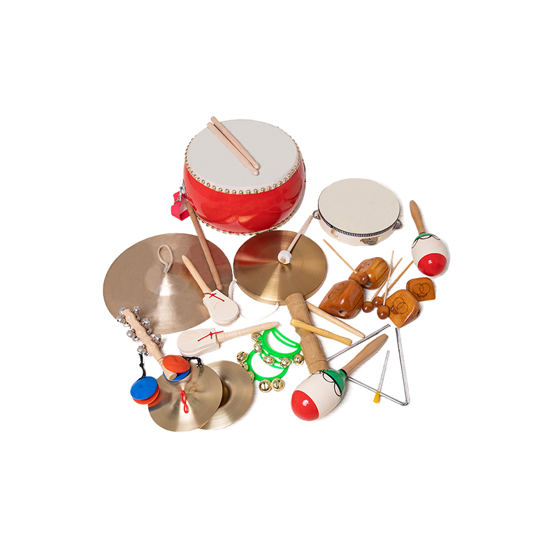 YDJX-YY-CT,13种产品 1小堂鼓1个, 2沙锤1付, 3.木鱼四音一组, 4.圆舞板1付,5.吊钹1个,6.小镲1付. 7.小锣1个, 8.铃鼓1个,9.双响筒1个,10.串铃1付, 11.棒铃13铃1个,12.三角铁1付, 13.响板1付。