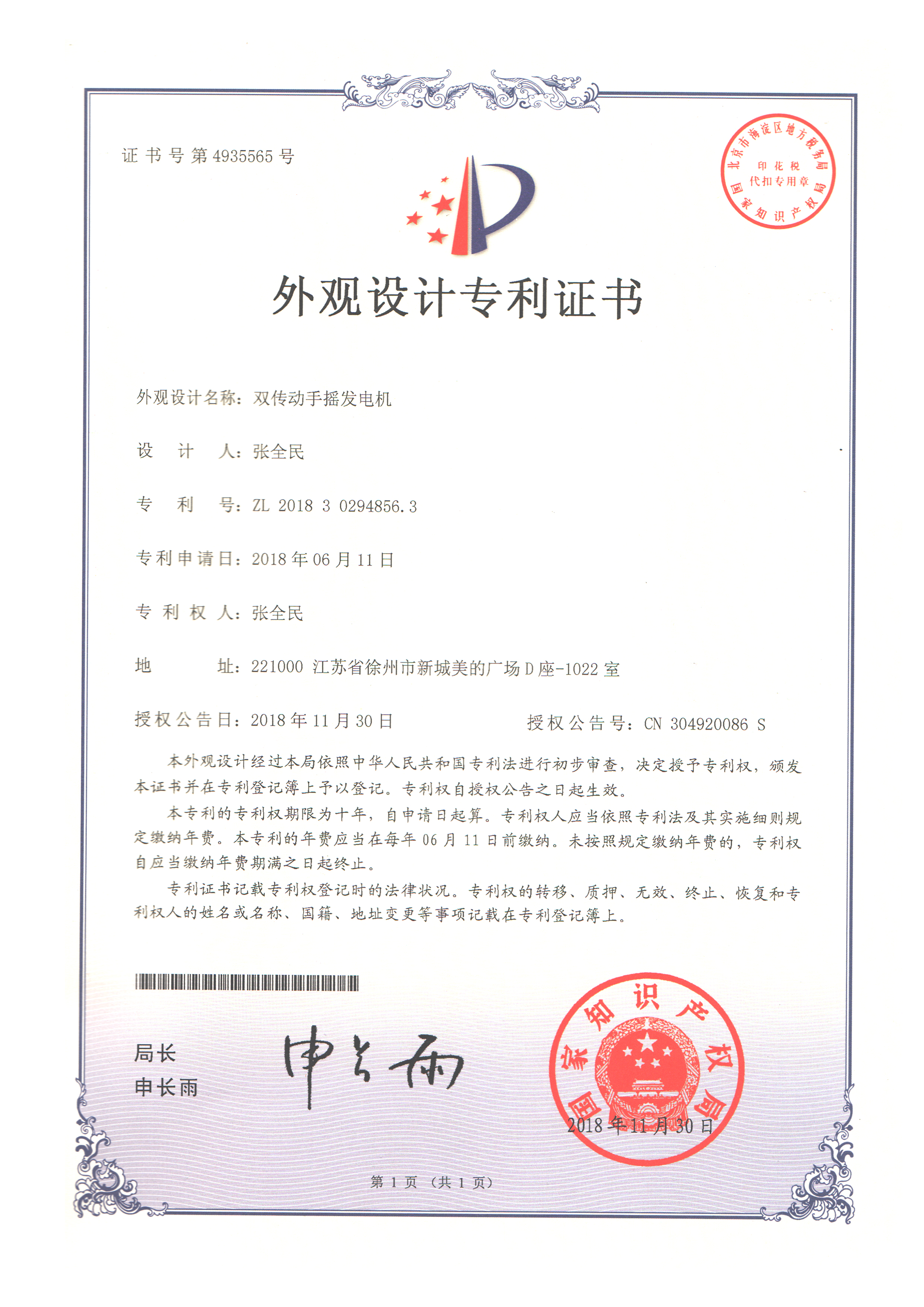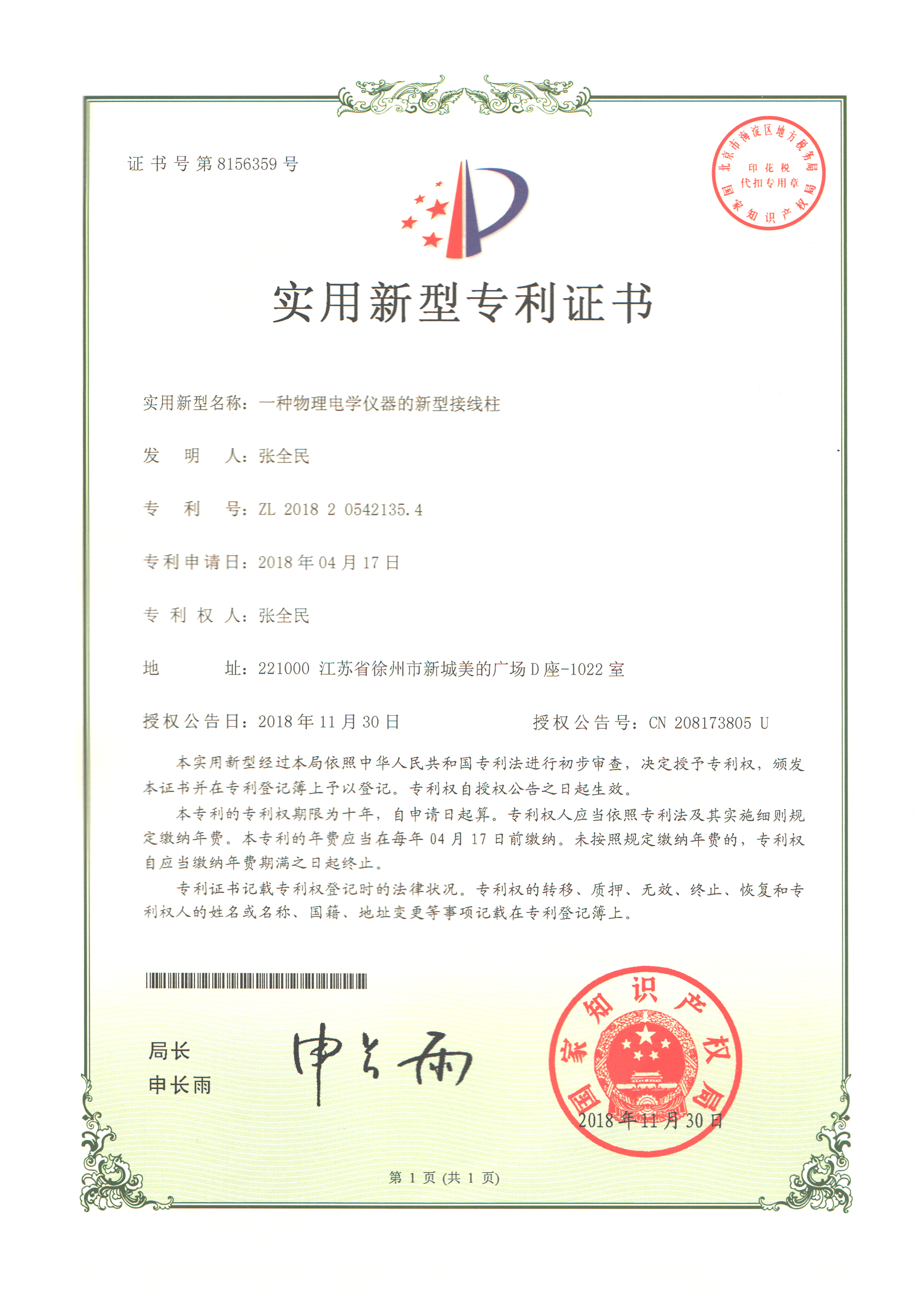 - 专利证书