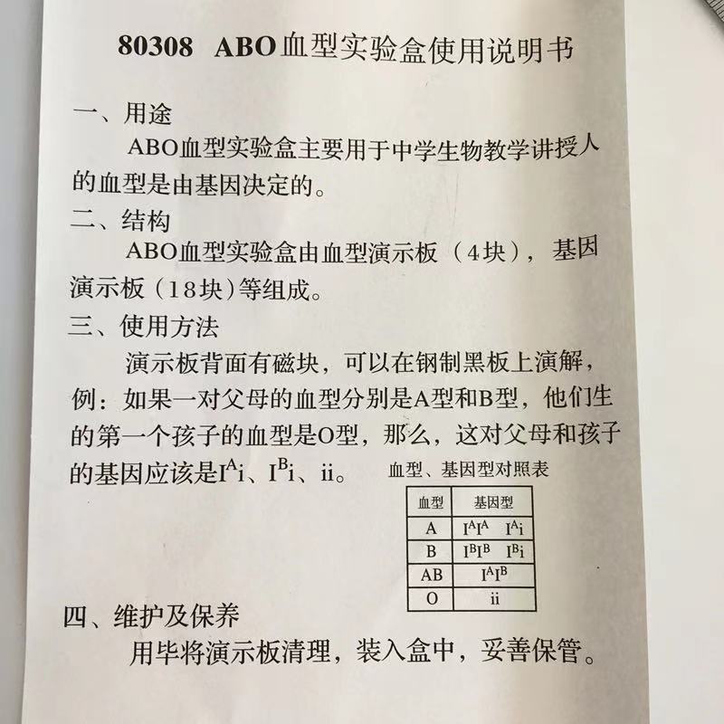 | 产品名称: | ABO血型实验盒 【30809000800】 |